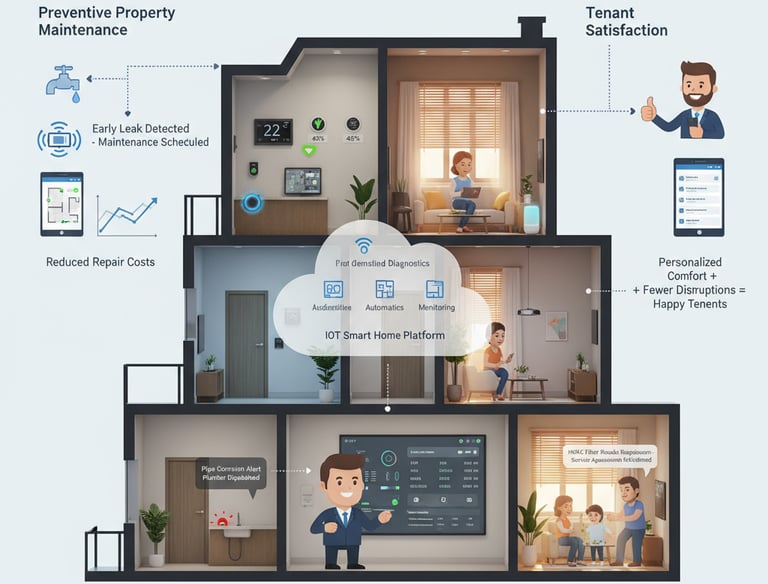 For investors, the benefits translate directly to the bottom line: Smart Environmental Sensors prevent costly issues like water leaks and mold, achieving up to a 30% reduction in emergency maintenance costs. Smart Thermostats mitigate utility over-consumption, while high-tech features attract a premium rental rate and drive down vacancy rates by increasing student satisfaction. This proactive asset protection strategy ultimately improves the property's Net Operating Income (NOI) and long-term asset value.