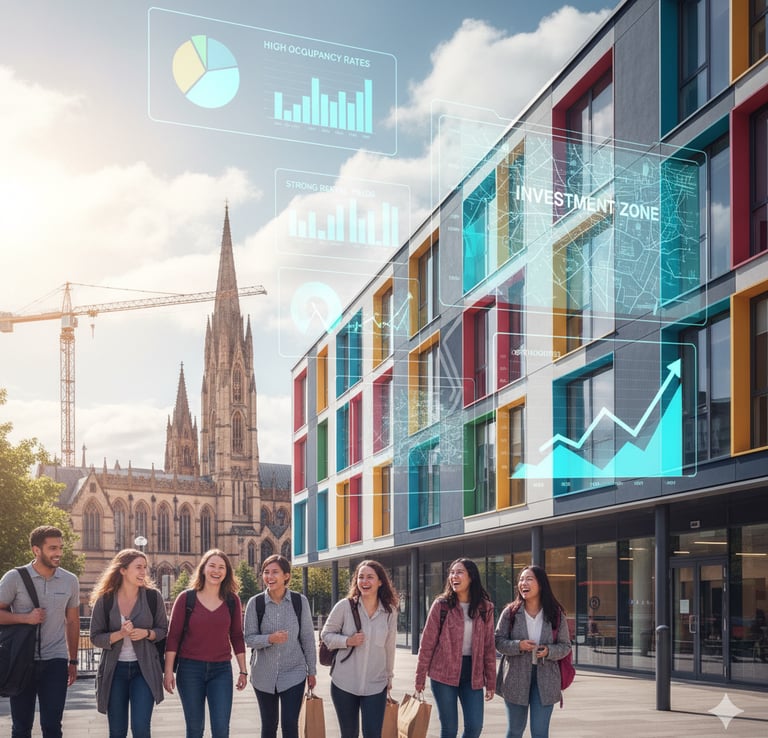 Purpose-Built Student Accommodation (PBSA): High-quality, secure residences that offer all-inclusive bills, on-site management, and a vibrant community atmosphere.